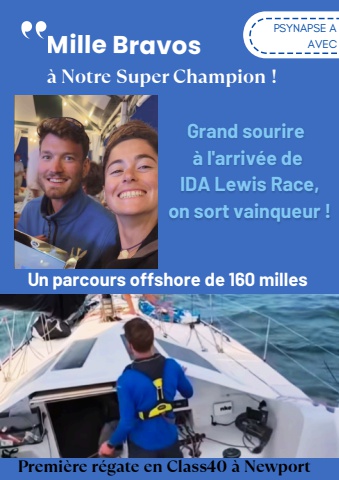 PSYNAPSE AAVECPSYNAPSE AM AVECille BravosGrand sourire%u00e0 l'arriv%u00e9e deIDA Lewis Race,on sort vainqueur !%u00e0 Notre Super Champion !Un parcours offshore de 160 millesPremi%u00e8re r%u00e9gate en Class40 %u00e0 Newport